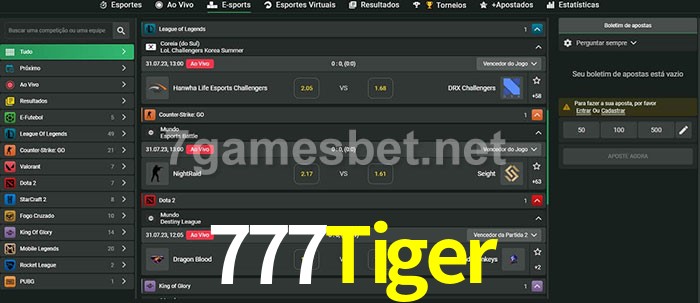 O 777Tiger oferece uma grande seleção de opções de apostas em e-sports com probabilidades competitivas